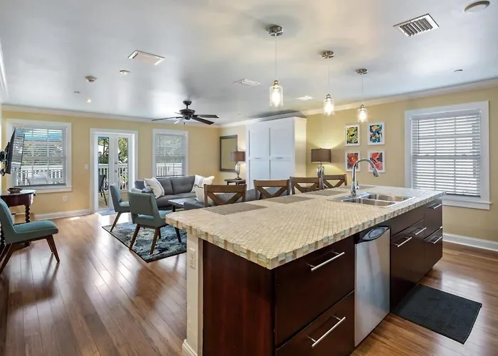 The 116 m² Cloud Suite On Duval By Brightwild is situated about 500 metres from Key West Lighthouse and Keeper's Quarters Museum and 10 km from Key West International airport. Staying in this 3-bedroom apartment, nestled just moments from Duval Street, guests can relax on a sunny patio.